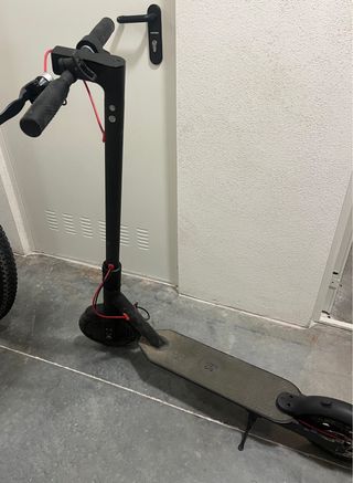 Patinete eléctrico de color negro, ideal para desplazamientos urbanos. - Diseño moderno y funcional. - Manillar ergonómico. - Ruedas resistentes. - lleva un tiempo parado pero está bien,ruedas macizas