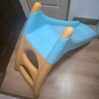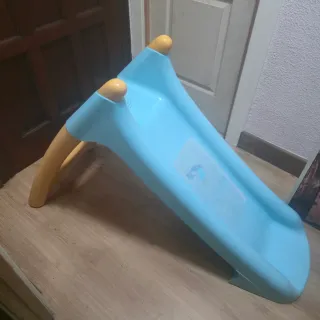 Tobogán de plástico para niños, ideal para jugar en interiores o exteriores. Su diseño es seguro y divertido. - Color azul con detalles en amarillo. - Estructura resistente.