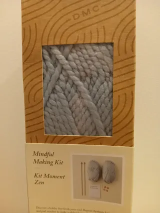 Kit de punto DMC para un momento de mindfulness y relajación. - Incluye lana de color gris claro. - Agujas de punto. - Instrucciones.