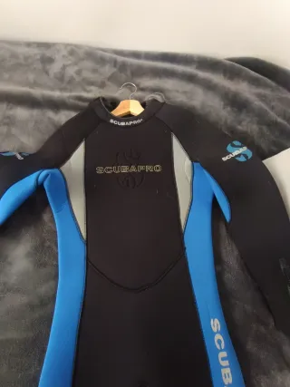 Traje de neopreno SCUBAPRO para inmersión. - Diseño en negro y azul. - Mangas largas. - Cuello redondo.