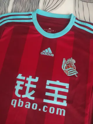 Camiseta de fútbol de la Real Sociedad de la temporada 2015-2016. Talla M - segunda equipación color burdeos con detalles azul celeste. - Logo de Adidas en la parte frontal, bordado. - Escudo del club en el pecho, bordado - ikurriña bordados detrás.