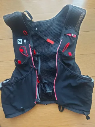 Chaleco de trail running de la marca Salomon en color negro. Diseñado para llevar lo esencial durante tus carreras. - Tejido de malla transpirable. - Múltiples bolsillos frontales y traseros. - Cierres ajustables.