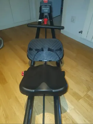 Máquina de remo Domyos 100 de Decathlon. Diseñada para un entrenamiento completo en casa. - Estructura robusta y duradera. - Asiento cómodo y deslizante. - Reposapiés ajustables.