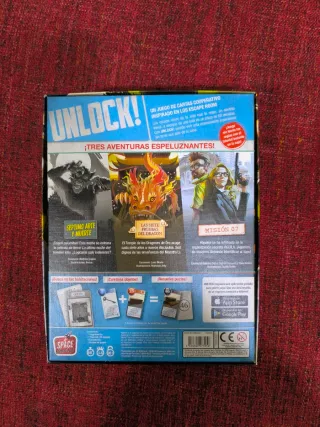 Juego de mesa Unlock! Epic Adventures. Muy buen estado. Completo. Solo tiene un pequeño golpe en la esquina de la caja. Ver foto. - Caja del juego. - Incluye cartas y manual.