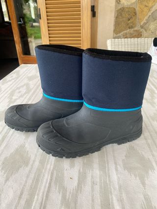 Botas de agua para niños, perfectas para días de lluvia o nieve. Son cómodas y prácticas. - Caña alta de tejido azul. - Suela de goma negra. - Detalle de banda azul.