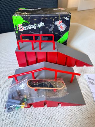 Set de skate fingerboard con rampa y patineta. - Incluye rampa de skate. - Patineta de fingerboard. - Accesorios para la rampa.