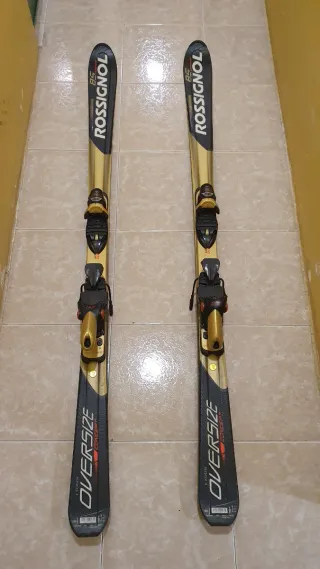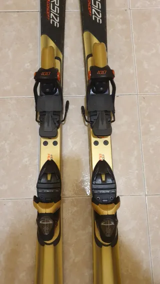 Esquís Rossignol Carvin con fijaciones. - Modelo Oversize Concept. - Diseño en dorado y negro. - Fijaciones incluidas. - Tamaño 164 cm. Usados en cuatro o cinco ocasiones, ya que no puedo seguir esquiando.