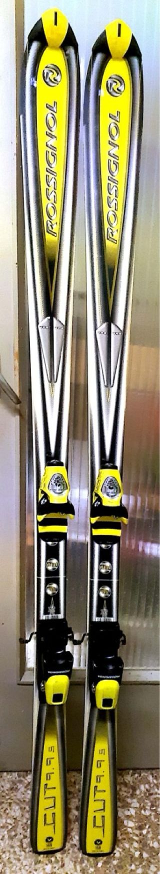 Esquís carving Rossignol en color amarillo y plateado. Listos para la nieve. - Diseño deportivo. - Fijaciones incluidas. Modelo: ROSSIGNOL CUT 9.9 S 160 cm. Fijaciones ROSSIGNOL FDX 95 Seminuevo