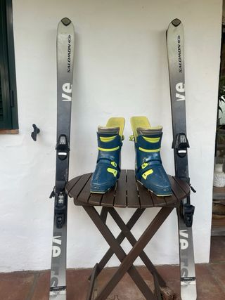 Conjunto de esquí para disfrutar de la nieve. Incluye esquís, botas y gafas. - Esquís de carving de 1.60 metros. - Botas de esquí talla 40. - Gafas de esquí.