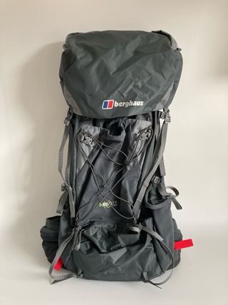 Mochila de trekking Berghaus BIOFLEX Light 65 litros (ref.modelo 20808). Nueva, nunca se ha utilizado. • Sistema de espalda BIOFLEX Light con alto ajustable para que el peso se reparta de forma óptima. • El armazón ligero ofrece una excelente transferencia de carga para cargas medias. • Compresión lateral HALO para una mayor eficiencia de compresión. • Funda para la lluvia. • Sistema de hidratacion compatible. • Bolsillo para botellas o bastones. • Compartimento frontal ajustable con cuerdas (su elástico de arriba está cedido pero todo queda sujeto con cuerdas). • Alto: 77 cm, ancho: 38 cm, fondo máximo: 34 cm. Peso: 1,7 kg