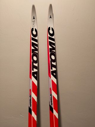 🎿 Esquís de Fondo Atomic Pro 200 cm – Classic con Escamas – Seminuevos Vendo esquís de fondo para estilo clásico en estado seminuevo, perfectos tanto para pasear como para entrenar sin complicaciones. • Marca / Modelo: Atomic Pro • Altura: 200 cm • Tecnología: Densolite ligero • Suela: Escamas (no necesitan cera de agarre) • Fijación: Salomón mixta (válida para classic y skating) • Incluye: Bastones Tecno 145 cm Esquí muy cómodo, ligero y con gran agarre gracias a las escamas. Ideal para quien quiere disfrutar del clásico sin preocuparse por ceras.