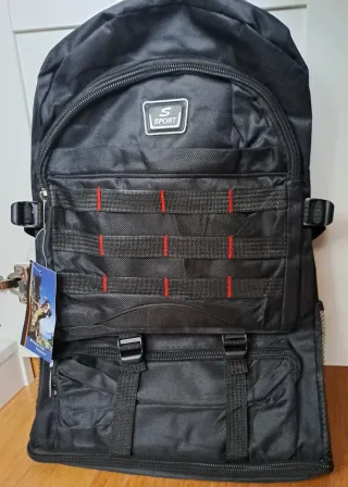 Mochila/macuto de senderismo impermeable de gran capacidad, ideal para excursiones largas (montañismo, escalada, camping, trekking...). - Capacidad de 55+10 litros (fondo ampliable). - Diseño con múltiples compartimentos y correas ajustables. - Color negro. Alto de la mochila sin ampliar: 50cm Alto de la mochila ampliada: 65cm La compré para hacer senderismo pero al final no fui. Está nueva.
