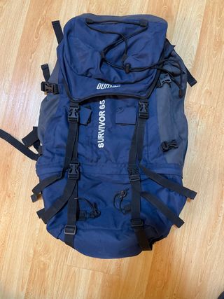 Mochila de senderismo SURVIVOR 65, ideal para tus aventuras al aire libre. Su diseño robusto y capacidad la hacen perfecta para largas caminatas. - Color azul marino y gris con múltiples compartimentos y correas de ajuste. - Dos bolsillos a cada lado: uno con cremallera y otro con ajustable. - Bolsillo superior e interior con cremallera. - Bolsillo con impermeable cubre mochila. - Ajustable interno en la parte inferior para división del espacio de la mochila. - Medidas aproximadas: alto 61cm, ancho 30cm y fondo 25cm.