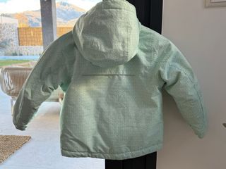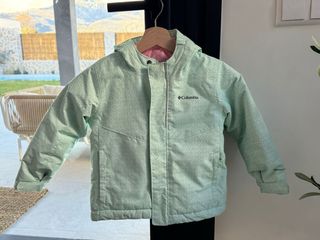 Chaqueta de nieve Columbia para niña en talla 4. Ideal para mantenerla abrigada y seca en sus aventuras al aire libre. - Diseño con estampado de puntos blancos sobre fondo verde menta. - Capucha integrada. - Cierre de cremallera frontal. - Bolsillos laterales.