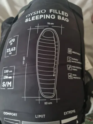 Saco de dormir de la marca Oysho, ideal para tus aventuras al aire libre. Diseñado para ofrecer comodidad y protección. - Peso: 670 gr (23,63 oz). Muy ligero. - Dimensiones: 185 cm de largo, 75 cm de ancho y 53 cm de fondo, para una altura de hasta 170 cm. - Talla: S/M. - Tejido resistente. - Protección contra el viento. Altus, zara, decathlon