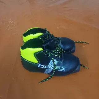 Botas de esquí de fondo en color negro y detalles en amarillo neón. - Talla 28. - Cierre con cordones. - Marca Botas Axtel Jr. - Fijacion SNS - Como nuevas