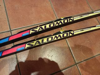 Se venden esquís de fondo de estilo clásico marca Salomón. usados dos temporadas,pero bien cuidados y en muy buen estado. longitud : 2 metros, no muy duros. Para fondistas entre 70 y 75 kg. fijación Salomón SNS propulse. Botas S- lab classic RS17 con doble sistema de sujeción piloto SNS, muy pocos usos, prácticamente nuevas. Talla44, USA 10,5 Se regala corcho de cera taco y tres ceras taco.
