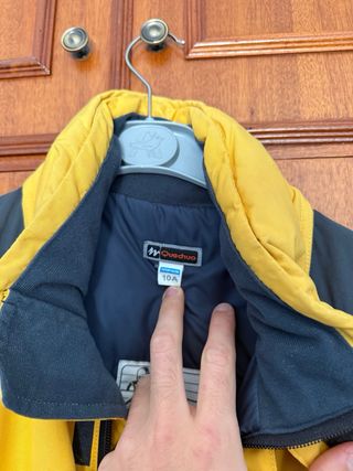 Mono de esquí Quechua de color amarillo y negro, ideal para niños de 10 años. - Diseño bicolor. - Cuello alto. - Cremallera frontal. - Cinturón ajustable.