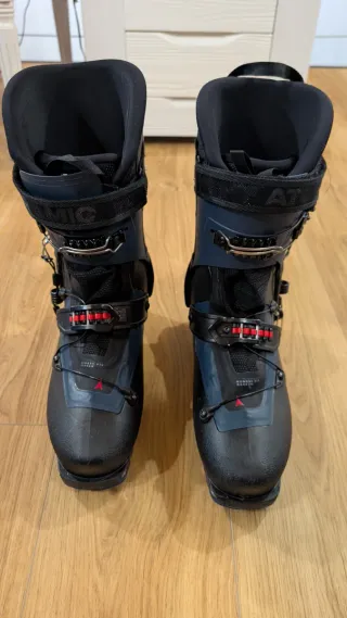 Botas de esquí de travesía Atomic Backland Expert. - Color negro y azul. - Cierres de hebilla. - Tirador en la parte trasera. Un día es pistas y tres haciendo skimo. Muy cómodas al subir pero no me hago a ellas bajando.