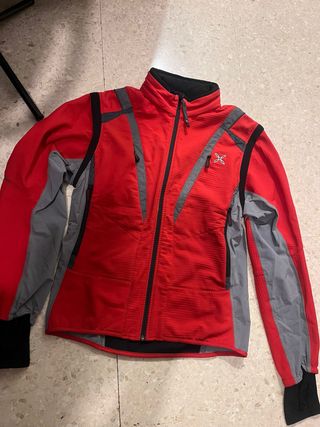 Chaqueta técnica Montura con un diseño moderno y funcional. Diseñada para esquí de fondo travesías y deporte al aire libre - Combinación de colores rojo y gris. - Cuello alto con cremallera y capucha Impermeable - Bolsillos frontales con cremallera. -Bolsillos Internos -Bolsillo Trasero -Mangas Desmontables