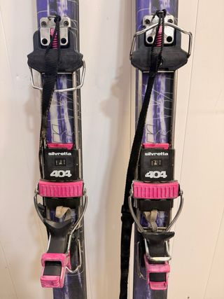 esquis y fijaciones de travesia muy polivalentes van realmente bien y son duros, conservan muy buena suela y canto aun.