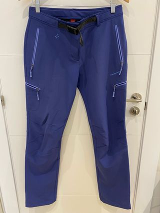 Pantalón de travesía para mujer en talla 36. Como nuevo, puesto una vez. - Color azul marino. - Tejido ligero y resistente añ agua. - Rodillas con forma, para facilitar la caminata y subida. - Bolsillos con cremallera. - Boton de ajuste en el bajo, para hacerlos pirata.