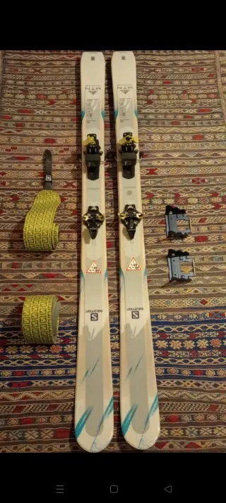 Conjunto completo de esquí de travesía para mujer. - Esquís Salomon MTN. (153) - Fijaciones Dynafit - Focas ( pieles) - Cuchillas