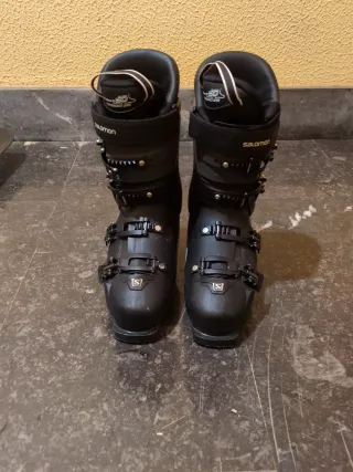 Botas de esquí alpino Salomon S PRO 100. No han sido termo selladas. Están en perfecto estado. Se venden por falta de uso, ya que llevo varias temporadas que solo práctico esquí de travesía. Muy cómodas. - Color negro. - Cierre con 4 ganchos y velcro. - Diseño deportivo. - Talla: 28/28.5