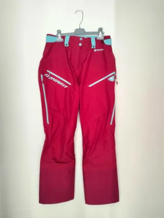 Pantalón de esquí de travesía Dynafit Radical 2 GTX en color granate y detalles en azul claro (Color: Beet Red). - Tejido GORE-TEX. - Mujer talla L (14) - Cremalleras en los bolsillos laterales. - Logo de Dynafit en la pierna izquierda. - Detalle de logo GORE-TEX en la cintura. - Ajuste cintura con velcro. - Pernera reforzada con polaina integrada. - Cremalleras laterales de ventilación. - Tiene unas manchitas en la pierna izquierda a la altura del muslo. Vendo por falta de uso. Utilizado 3 veces.