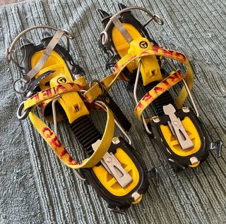 Crampones automaticos Grivel Airtech en color negro y amarillo. Incluyen bolsa de transporte y protectores de puntas. Tienen uso pero están perfectamente operativos. Quien conoce esta marca sabe que son irrompibles. Las correas, el sistema de cramponaje automático, las puntas, antibot estan perfectos. Los vendo porque me he comprado algo mas ligero para la travesia.