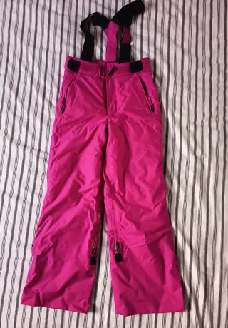 Pantalón de esquí para niña en color fucsia. Decatlon talla 8-10 - Tirantes ajustables. - Cremalleras laterales en los bajos. - Bolsillos con cremallera.