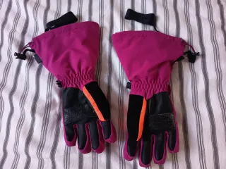 Guantes de esquí Decathlon en color fucsia y naranja. - Talla 8-10. - Cierre ajustable en la muñeca. - Cordón de ajuste en el puño.