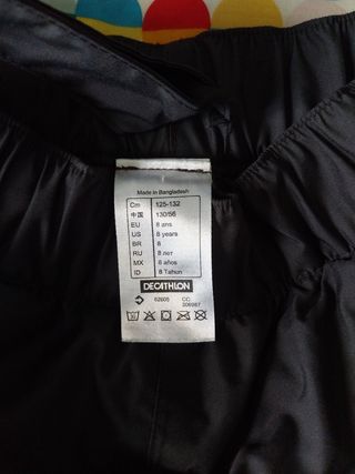 Pantalón sky infantil, talla 8 años, 125-132cm. Con tirantes ajustables y de quita y pon. Marca decathlon. NO HAGO ENVÍOS