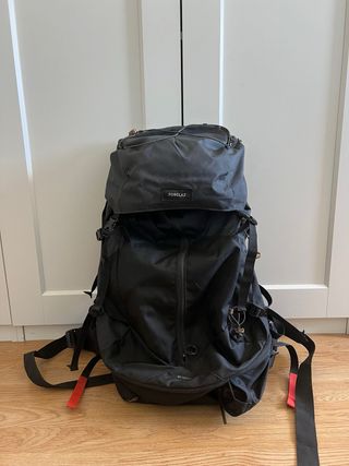 **USADA EN 2 ocasiones por niño Mochila de montaña y trekking 50L Hombre Simond Trek100 Easyfit DECATLÓN Dimensiones de la mochila en uso: Altura: 58 cm / 23 in Ancho: 26 cm / 10 in Profundidad: 26 cm / 10 in Compatible con fundas de guardado 1/2 luna 2x7L Longitud de la espalda (= distancia de la 7ª vértebra a la cresta ilíaca): Mínimo: 41 cm / 16 in Máximo: 53 cm / 21 in Perímetro del cinturón: Mínimo: 75 cm / 30 in Máximo: 132 cm / 52 in