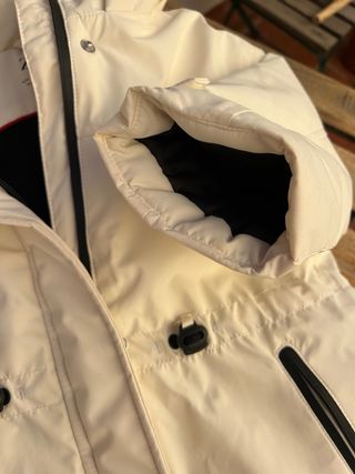 Conjunto de sky para niña de la marca Zara, talla 3 -4 años. Chaqueta es Zara el pantalón decathlon. - Color blanco roto. - Capucha con pelo sintético extraíble. - Cierre de cremallera y botones. - Bolsillos con cremallera.