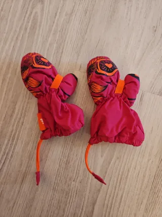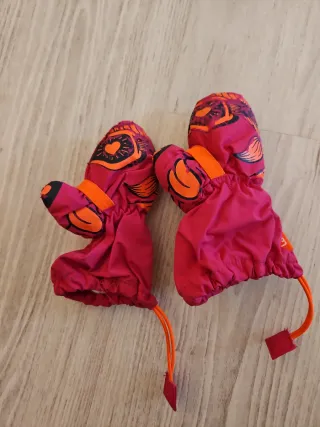 Manoplas de esquí para bebé de la marca Wedze, de Decathlon. Edad 0 a 3 años. - Color fucsia con estampado. - Cierre con goma en la muñeca. - Cordón elástico.