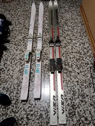 Se venden dos pares de esquís. - Un par de esquís Dynastar. - Un par de esquís Flair. - Fijaciones incluidas. A recoger en Burjassot (Valencia) Los 2 pares 50€.