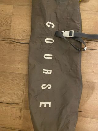 Bolsa de esquí vintage de la marca Dynastar. Presenta un diseño colorido con franjas de arcoíris y el texto COURSE en la parte inferior. - Diseño con franjas de arcoíris. - Correa de transporte. - Cierre de cremallera. Medida 2,10cm