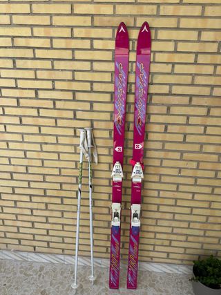 Modelo: Evasion 2 (Variable Profile). Construcción: Incorporan refuerzos que proporcionan ligereza y una buena respuesta en los giros. Fijaciones: Incluyen fijaciones Salomon (se ven ajustables y en buen estado en las fotos). Nivel recomendado: Ideales para nivel principiante o intermedio que quiera progresar sin gastar mucho en equipo nuevo. Estado: Bien cuidados, con marcas de uso normales que no afectan al rendimiento. Cantos y suela en buen estado (recomiendo poner si han sido encerados recientemente). Perfectos para: Esquí de pista y all-mountain ocasional. Un equipo clásico muy duradero.
