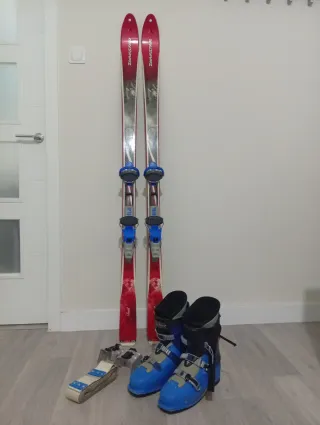Equipo completo. Todo lo que necesitas para hacer travesía. Esquis dynastar alti trail 170cm. Fijaciones silvretta easy go. Con cuchillas. Pieles de foca nueva. Sin estrenar. Botas dynafit allí terrain. Con pines para fijaciones ligeras. Talla (28 cm) 326 carcasa. Es un equipo ideal para iniciarse, con un esquí fiable y unas botas polivalentes. Se entregan encerados, cantos hechos y listos para usar. No se puede enviar por la aplicación.(+15€ de envío) No se vende por separado. No negociables. Contacta por WhatsApp. 649555572. Travesía. Skimo. Alpinismo