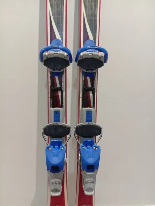 Esquís Dynastar modelo 63 Omega Glass en color azul, rojo y blanco. Tienen fijaciones. - Marca: Dynastar - Modelo: 63 Omega Glass - Color: Azul, rojo y blanco - Incluyen fijaciones