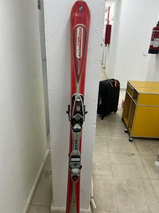 Esquís Dynastar Speed SX en buen estado. - Diseño en rojo y madera. - Fijaciones incluidas.