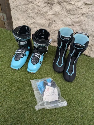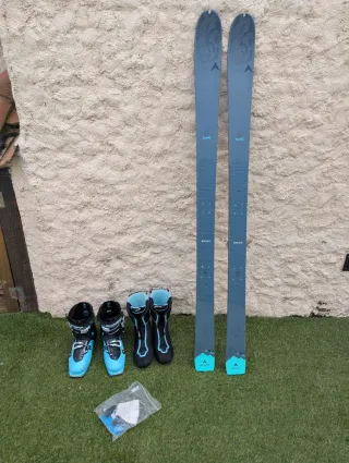Pack completo de esquí de travesía con botas. - Esquís Dynastar Tour 82 con fijaciones. Con 4 usos y con puesta a punto hecha para su venta en perfectas condiciones. - Botas Scarpa Gea talla 26 (41 EU). En buen estado y tambien muy poco uso. - Incluye bolsa con accesorios para las botas. Vendo por error en la talla