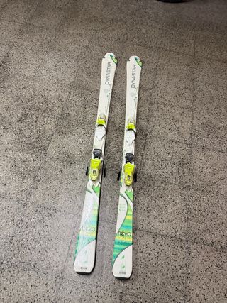 Esquís Dynastar Neva de 158 cm de longitud. Diseñados para ofrecer un buen rendimiento en pista. - Marca: Dynastar - Modelo: Neva - Longitud: 158 cm - Color: Blanco con detalles verdes y grises