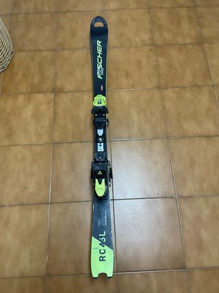 Esquís de la marca Fischer con tecnología Frequency Tuning. - Esquís de color amarillo y negro. - Modelo Race SC. - Fijaciones RC4. - 1’60 cm