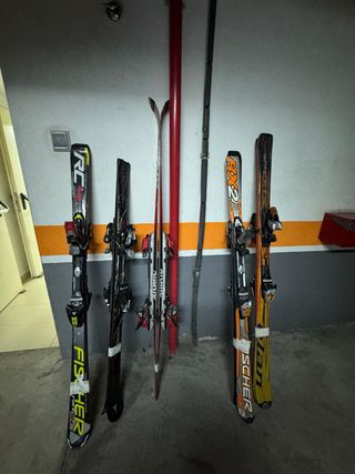 Pack de esquís de diferentes tamaños y marcas. Ideal para disfrutar de la nieve. - Esquís Fischer RC4. (160) - Esquís Atomic Race (120) - Esquís Fischer RX2. (160) - Esquís Atomic Nano (150) - Esquies Elan Magdire (168)