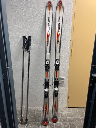 Esquís Fischer con fijaciones y bastones.