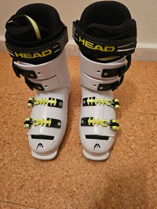 Botas de esquí para niños en talla 20.5. -Modelo HEAD raptor -En perfecto estado solo una temporada de uso - Color blanco con detalles en amarillo neón. - Cierres de hebilla metálica. - Interior acolchado para mayor comodidad.