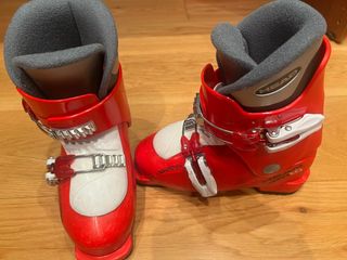 Botas de esquí Head Edge en color rojo, diseñadas para niños. Cuentan con un forro interior gris con un divertido estampado invernal. Son de la talla 20 y 20.5 - Cierre con hebillas. - Diseño llamativo en rojo y blanco. - Interior forrado para mayor comodidad.