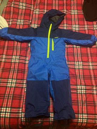 Mono de nieve infantil de la marca Wedze, ideal para los más pequeños. - Color azul y azul marino. - Cremallera delantera. - Capucha integrada.